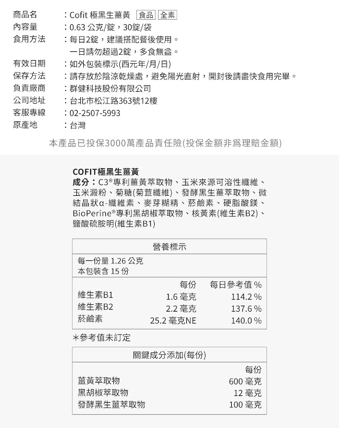 1.2.3袋|Cofit 極黑生薑黃(30粒/袋)