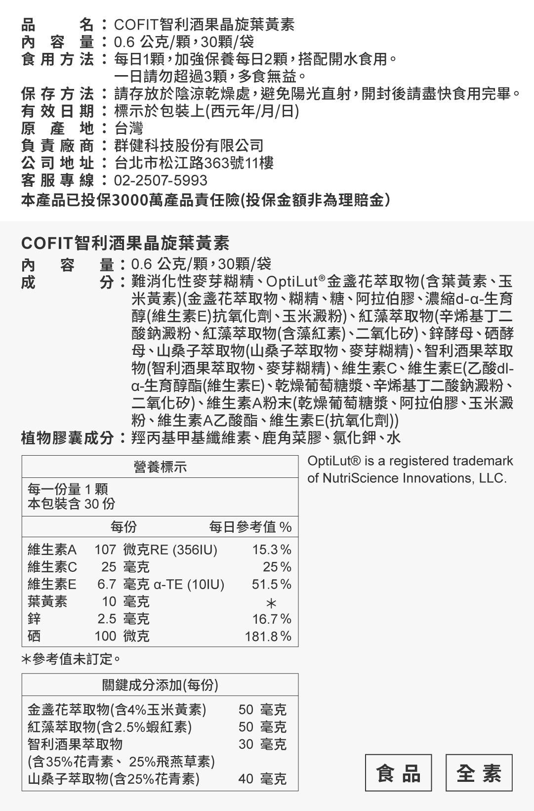 1.2.3袋|Cofit 智利酒果晶旋葉黃素(30粒/袋)