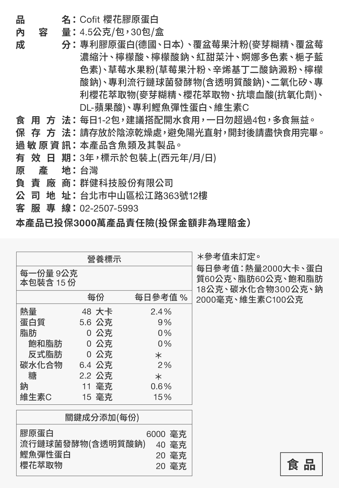 加購|Cofit 櫻花膠原蛋白(30包/盒)