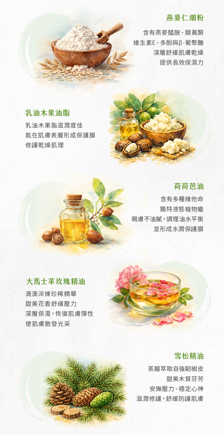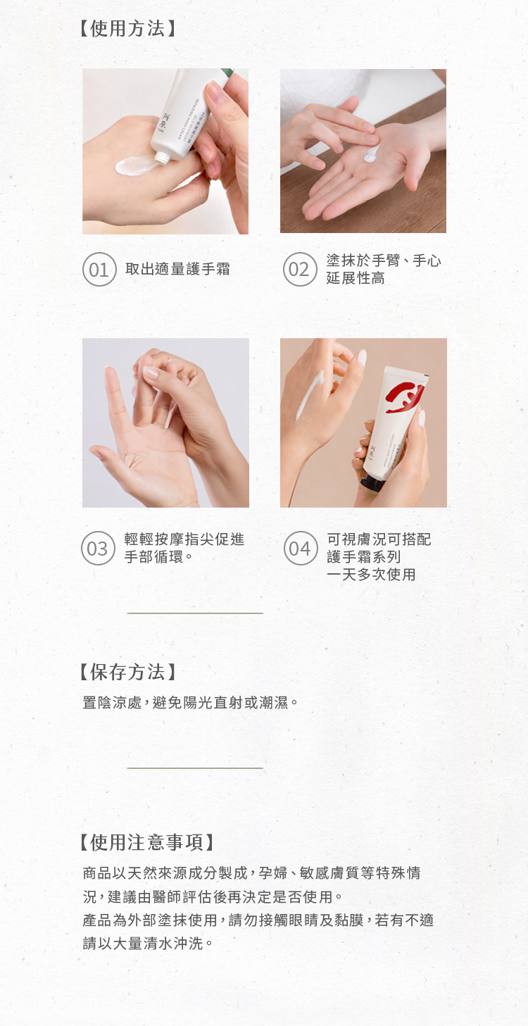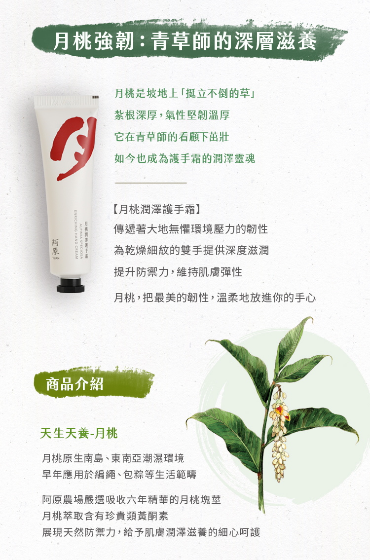產品名稱 月桃潤澤護手霜30g 本品含有 月桃萃取,月桃葉浸泡油,燕麥仁细粉,乳油木果脂,荷荷芭油,橄欖油,酪梨油,木糖醇,歐洲赤松精油,大馬士革玫瑰精油,雪松精油,玫瑰草精油,香葉天竺葵精油,玉蘭花精油,廣藿香精油,檜木精油 保存期限 原封三年,開封後六個月內用畢 保存方法 置陰涼處,避免陽光直射或潮濕 產 地 台灣